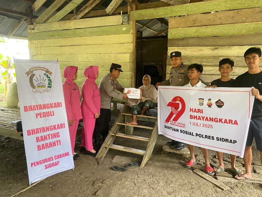 SIDRAP, kilatutama.com – Dalam rangka menyambut Hari Bhayangkara Ke-79 yang jatuh pada 1 Juli 2025, jajaran Polres Sidrap melalui Polsek Baranti, Polsek Tellu Limpoe, dan Seksi Propam Polres Sidrap menggelar kegiatan bakti sosial dengan menyalurkan Bantuan Sosial (Bansos) kepada masyarakat yang membutuhkan, Jumat (20/6/2025).
